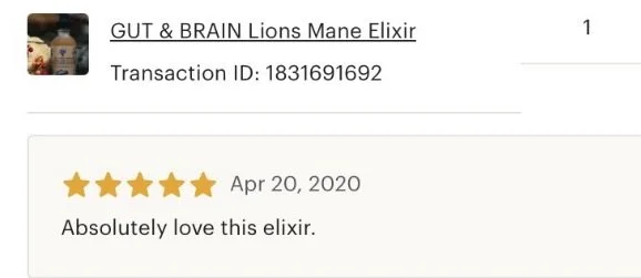 Apothecary + Education › Gut + Brain Lions Mane Elixir Image 1 of 6 Image 2 of 6 Image 3 of 6 Image 4 of 6 Image 5 of 6 Image 6 of 6 Gut + Brain Lions Mane Elixir $24.00 Add To Cart Added!